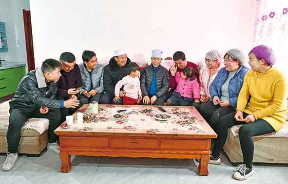 ▲馬幫林(左四)在銀川市潤(rùn)豐村家中與家人合影(2020年12月31日攝)。新華社記者王鵬攝