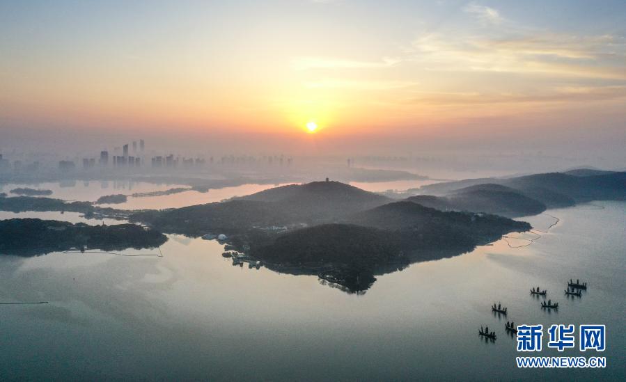 3月13日拍攝的江蘇省無錫市太湖黿頭渚景區(qū)晨景(無人機照片)。