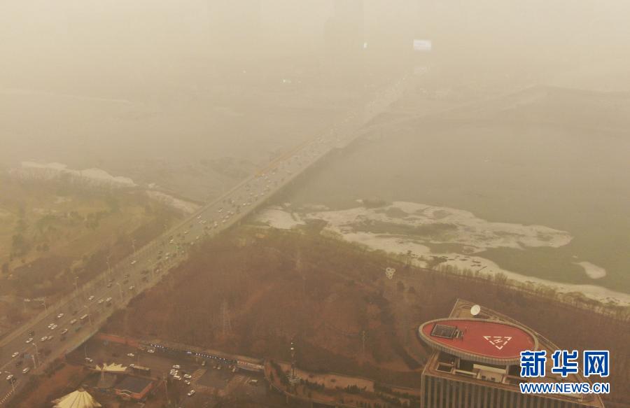 這是3月15日拍攝的遼寧省沈陽市渾河橋(無人機(jī)照片)。當(dāng)日,我國北方多地出現(xiàn)沙塵天氣。新華社記者 楊青 攝
