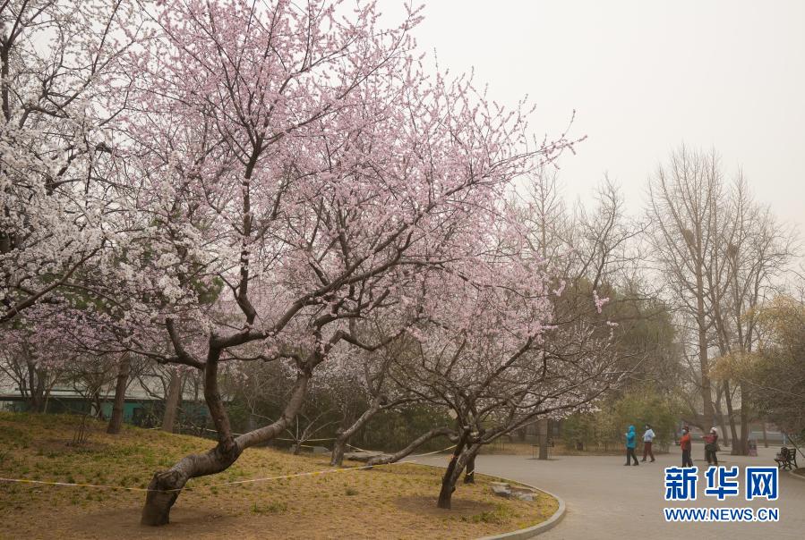 3月15日,人們?cè)诒本┯駵Y潭公園晨練。當(dāng)日,我國北方多地出現(xiàn)沙塵天氣。新華社記者 陳曄華 攝