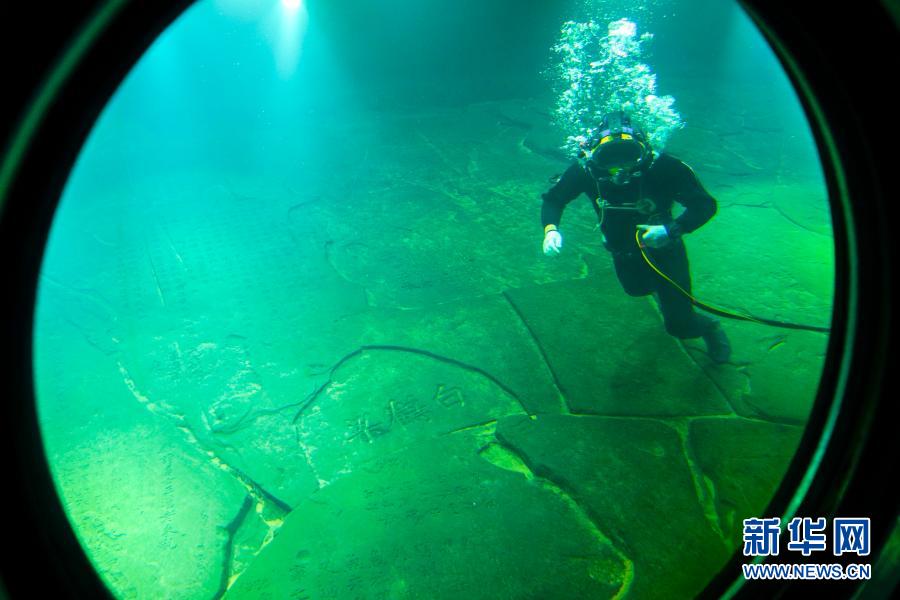 當日,重慶涪陵白鶴梁水下博物館迎來了第三次閉館修繕后的首次潛水員水下清理作業(yè)。潛水員通過壓力艙,進入水下40多米的白鶴梁題刻無壓容器罩中,重點清理水下燈具和燈罩、參觀廊道的觀察窗口玻璃,以及題刻本體上的泥沙。