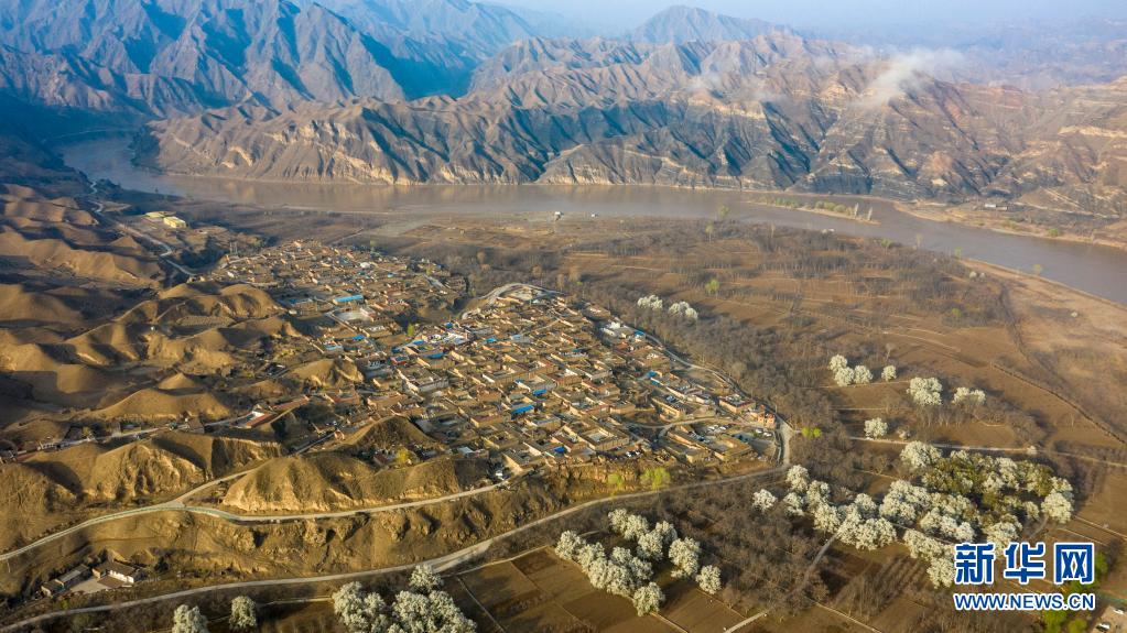 這是位于寧夏中衛(wèi)市黃河黑山峽河段的南長灘村(4月5日攝,無人機(jī)照片)。