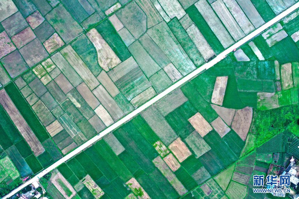 這是廣西欽州市欽南區(qū)康熙嶺鎮(zhèn)的田園風(fēng)光(4月5日攝,無(wú)人機(jī)照片)。