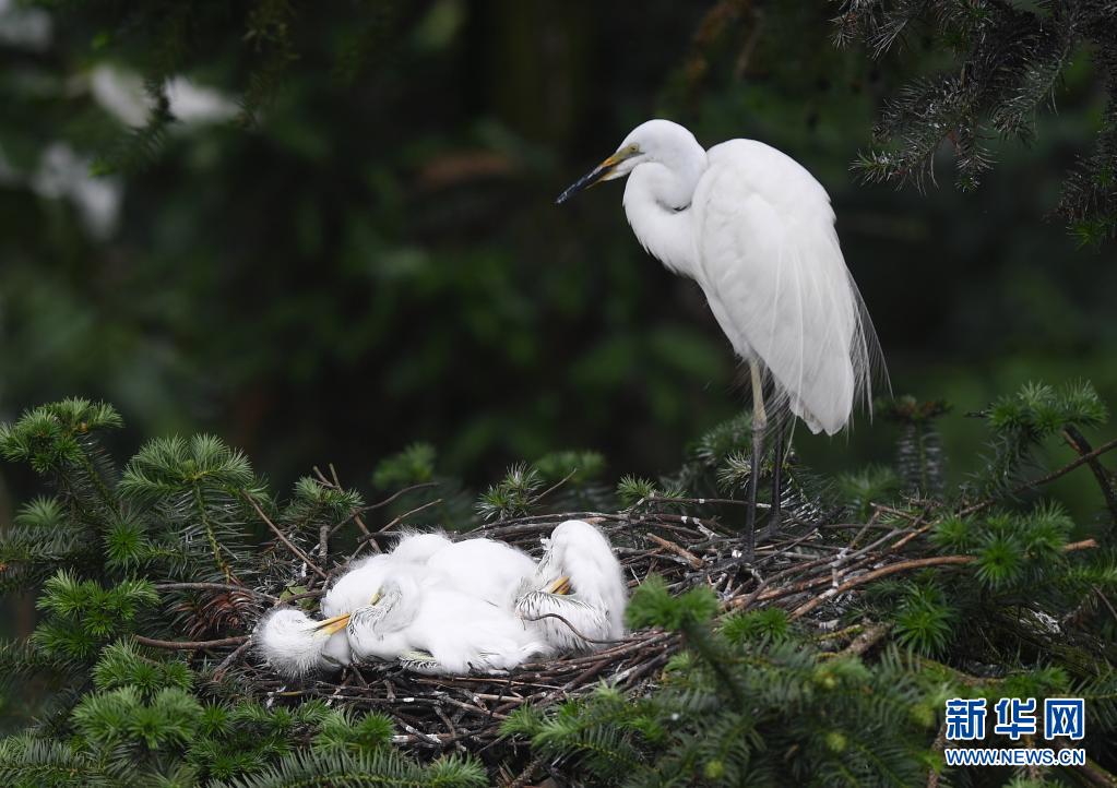 在南昌市新建區(qū)象山森林公園內(nèi),白鷺和雛鳥們在一起(5月18日攝)。