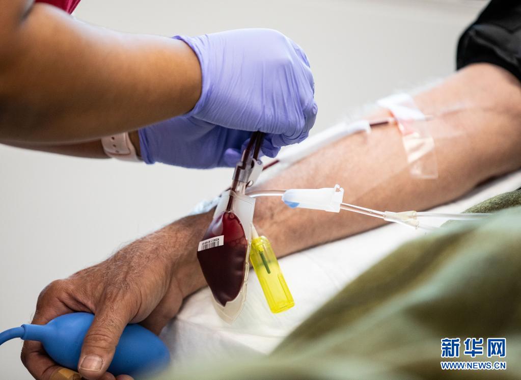 6月14日,在美國芝加哥,一名獻(xiàn)血志愿者在大芝加哥地區(qū)紅十字會(huì)一獻(xiàn)血站內(nèi)獻(xiàn)血。新華社發(fā)(喬爾·萊納攝)