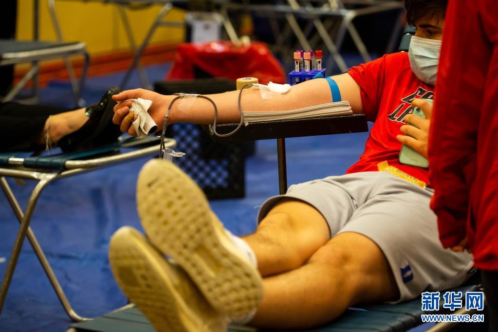 6月14日,在美國紐約州長島地區(qū)的尤寧代爾,獻血志愿者在美國紐約血液中心舉行的獻血活動上獻血。