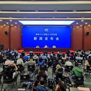 6月16日,神舟十二號載人飛行任務(wù)新聞發(fā)布會在酒泉衛(wèi)星發(fā)射中心召開(手機(jī)拍攝)。新華社記者 琚振華 攝
