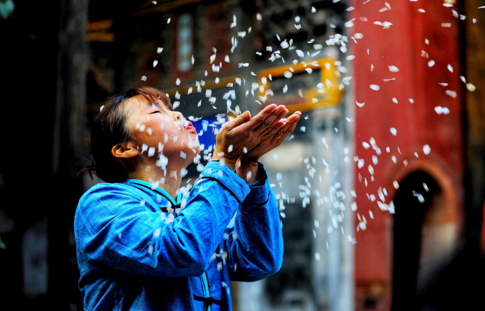 暮色初临,江西省樟树市三皇里旅游休闲街区,青砖灰瓦间悬起盏盏素雅灯笼。铡刀起落,老药工一声“白芍飞上天”,引得游客不自觉纷纷伸手。一时间,如雪纷飞、薄如蝉翼的白芍饮片,在眼前,也在指尖。