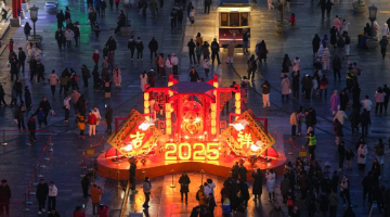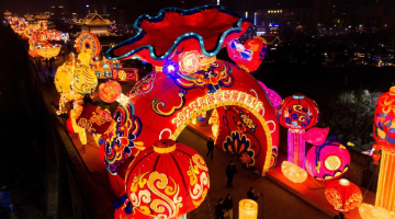 1月23日晚,人们在塞尔维亚贝尔格莱德“欢乐春节”活动现场拍照。