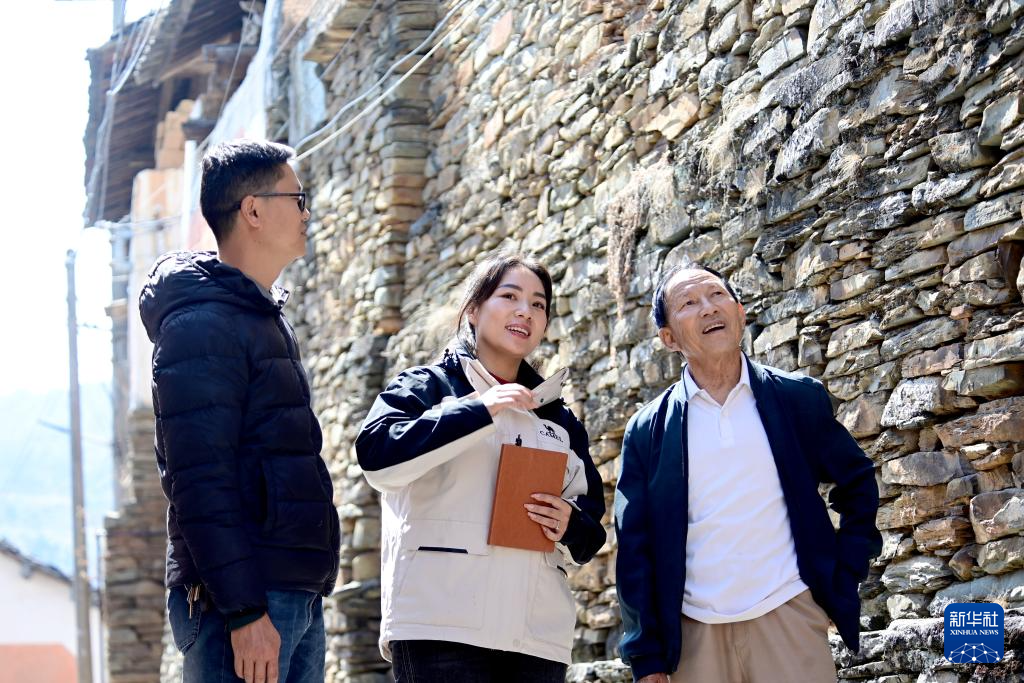 鲁丽华(中)在南涧彝族自治县公郎镇走访调研传统村落(2025年2月17日摄)。