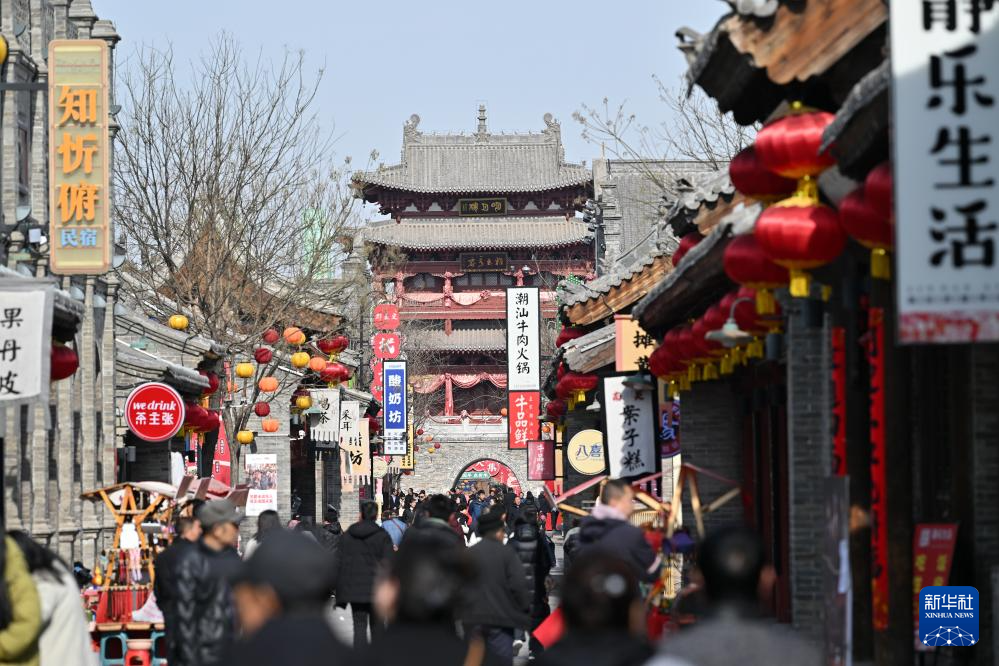 2月20日,游人在忻州古城游览。