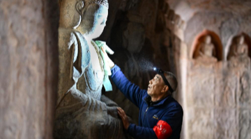 4月6日,中国上海歌舞团演员在日本新潟表演舞剧《朱鹮》。