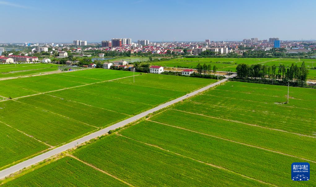2025年5月13日在岳阳屈原管理区营田镇荷花村拍摄的镉低积累水稻品种推广万亩示范片(无人机照片)。新华社发(周洋 摄)