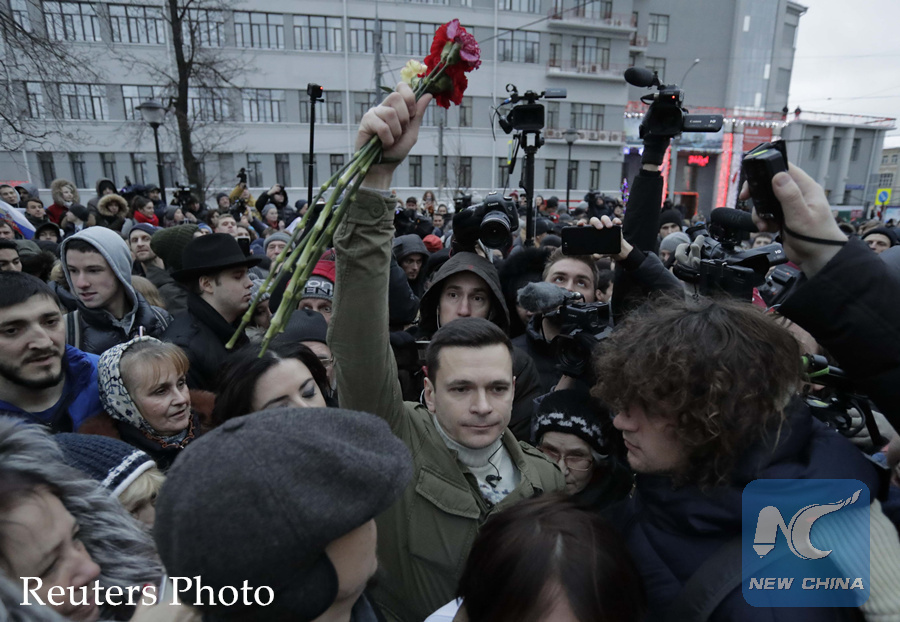 Opposition deputy of a Moscow municipal council Ilya Yashin attends a rally in support of fair presidential election in Moscow, Russia December 24, 2017. (REUTERS PHOTO)