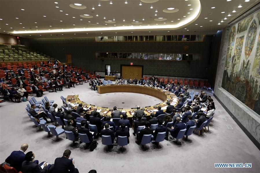 ?Photo taken on Sept. 4, 2017 shows the United Nations Security Council holding an emergency? meeting on the Democratic People's Republic of Korea's nuclear test at the UN headquarters in New York. (Xinhua/Li Muzi)
