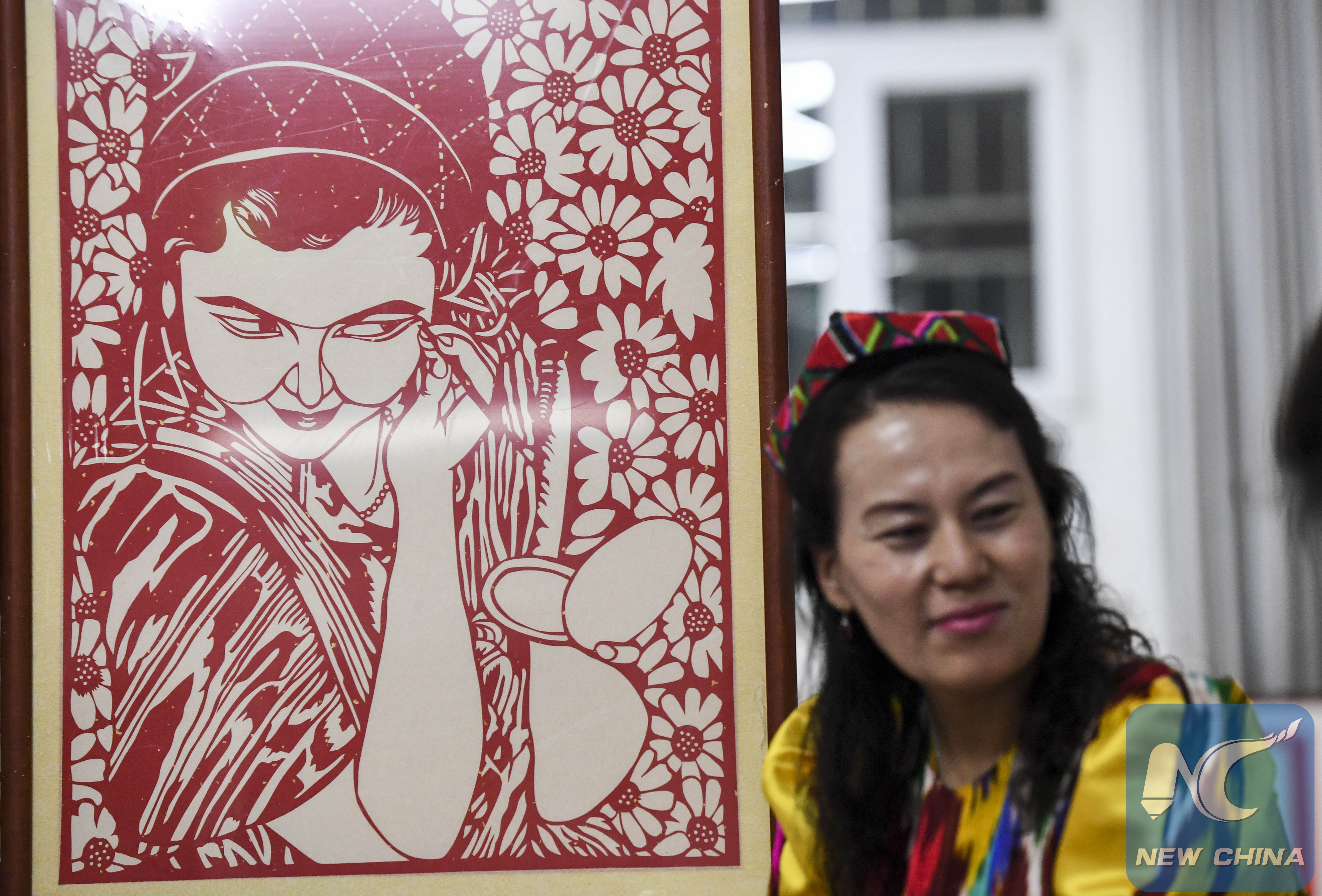 BEIJING, Jan. 10 (Xinhua) -- Paper-cutting, as its name suggests, is an art of cutting patterns into colorful paper with scissors or a knife. As a traditional folk art, paper-cutting is popular across different ethnicities in Xinjiang. Zaorigu Abdukerim, a Uyghur woman, is someone with an ardent interest.