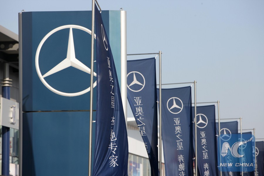 Logos of Mercedes-Benz are seen at an auto market in Beijing, capital of China. (Xinhua/Zheng Huansong)