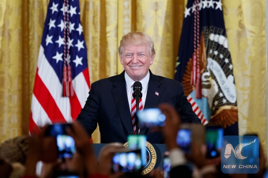 File Photo: U.S. President Donald Trump speaks during a National African American History Month reception at the White House in Washington D.C., the United States, Feb. 13, 2018. (Xinhua/Ting Shen)