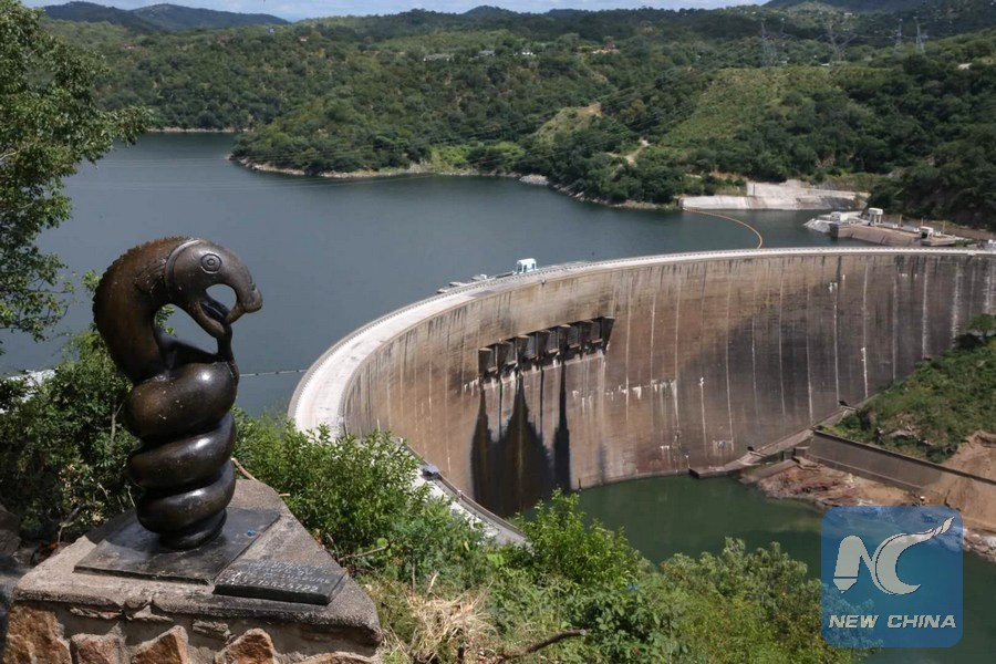 Photo taken shows the Kariba dam on March 28, 2018. The project was done by China's hydro power firm Sinohydro.(Xinhua/Shaun Jusa)