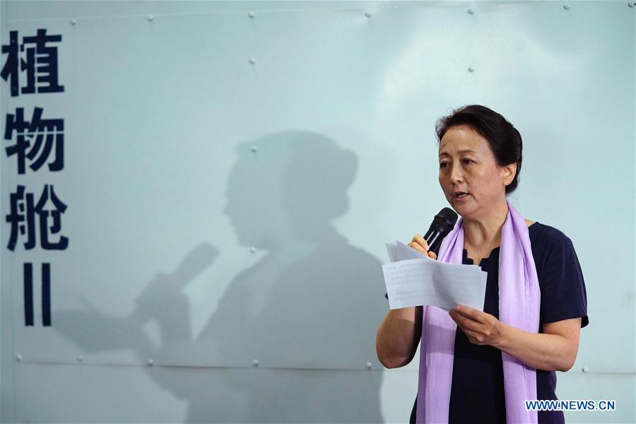 Liu Hong, chief designer of Yuegong-1, or Lunar Palace 1, speaks at a ceremony at Beihang University in Beijing, capital of China, May 15, 2018. Chinese volunteers have completed a one-year test living in a simulated space lab in Beijing, setting a new record for the longest stay in a self-contained cabin. The total length of the test, which started on May 10th last year, reached 370 days, with the third stage accounting for 110 days. Liu Hong said the test marks the longest stay in a bioregenerative life support system (BLSS), in which humans, animals, plants and microorganisms co-exist in a closed environment, simulating a lunar base. (Xinhua/Ju Huanzong)