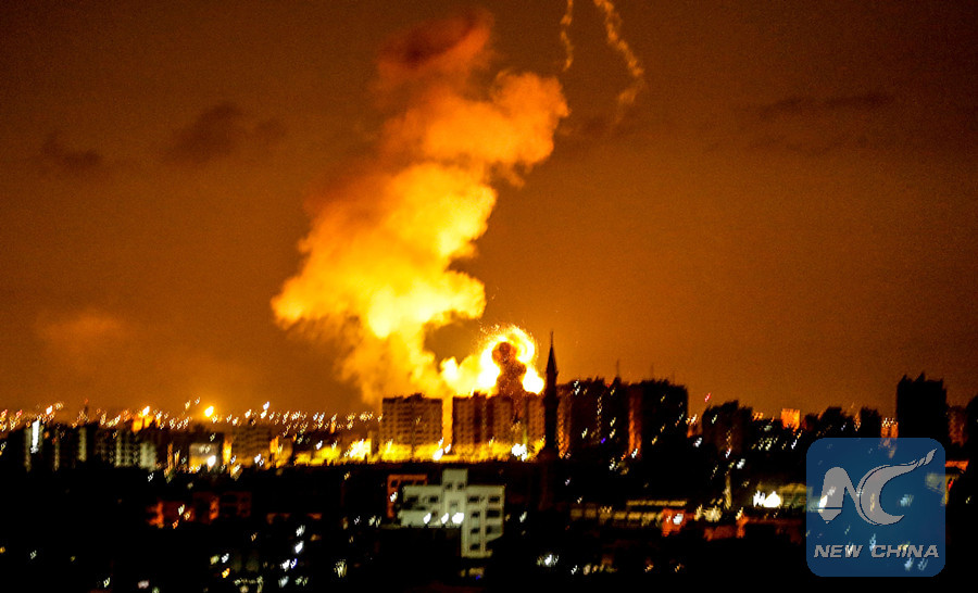 GAZA, June 18 (Xinhua) -- Israeli warcraft carried out nine successive airstrikes on Hamas military facilities in the Gaza Strip before dawn on Monday, in response to arson kites and balloons fired from the enclave, security sources said.