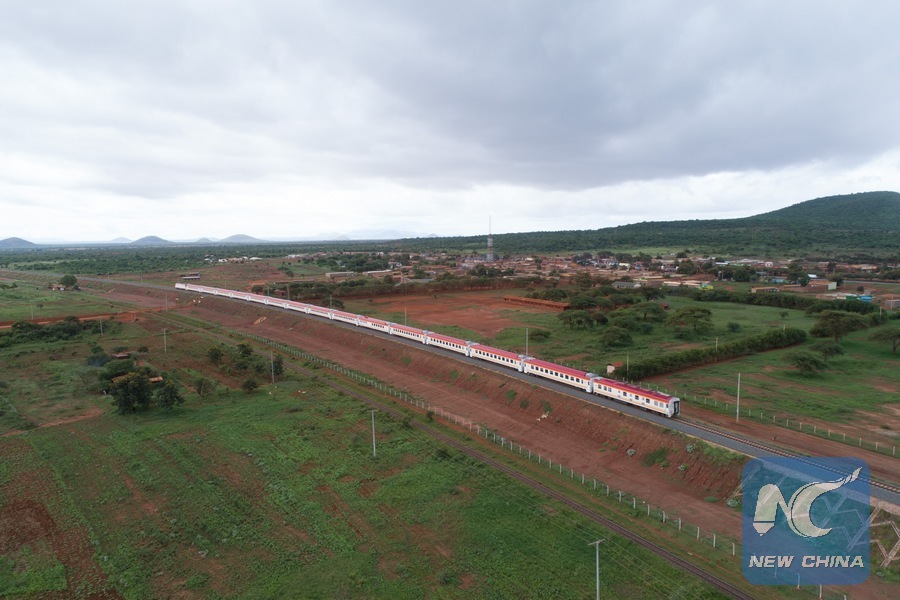 A train carries out a test run on Kenya's Mombasa-Nairobi Standard Gauge Railway (SGR) on May 24, 2017. (Xinhua/Chen Cheng)