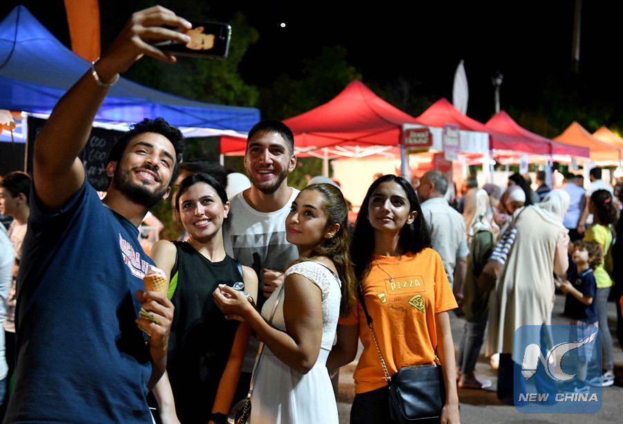 DAMASCUS, July 20 (Xinhua) -- After losing almost all of their teenage time to the seven-year-long war in Syria, young Syrians in the capital Damascus started to enjoy new events in the city, including the Food Street.