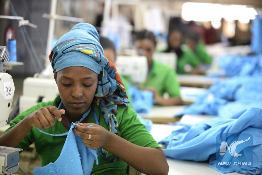 File photo shows a worker at Bole Lemi Industrial Park in Addis Ababa, capital of Ethiopia, April 6, 2017.(Xinhua/Michael Tewelde)