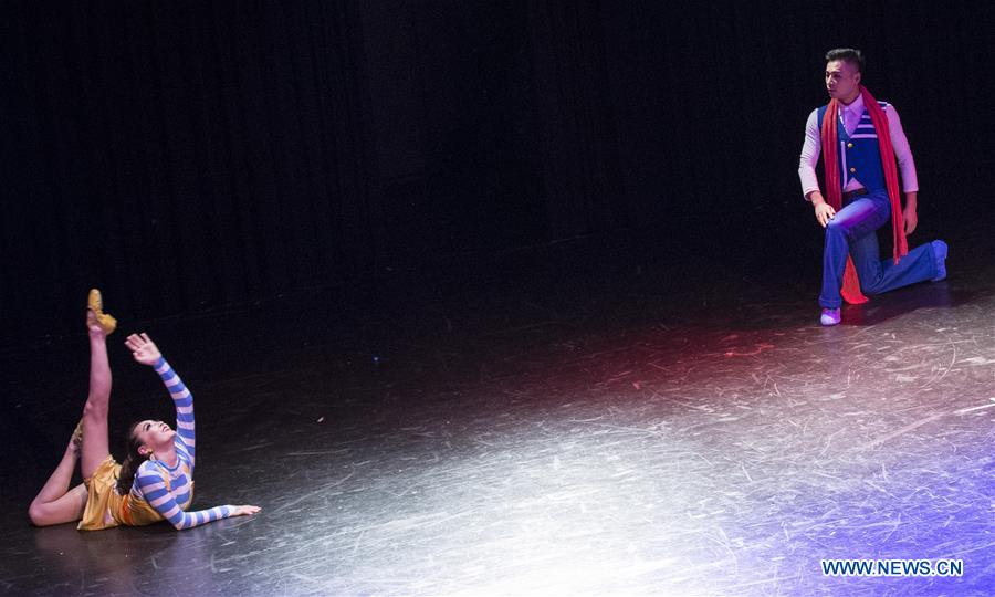 Acrobats from the China National Acrobatic Troupe perform during "China Goes Pop", a multi-spectacle show featuring martial arts, physical comedy and dazzling acrobatics, in Saint-Prex, Switzerland, Sept. 2, 2018. (Xinhua/Xu Jinquan)