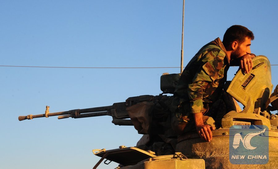 File Photo: A Syrian soldier looks on as Syrian forces enter the Kharab al-Shahem town in the western countryside of Daraa province in southern Syria on July 8, 2018. (Xinhua/Ammar Safarjalani)