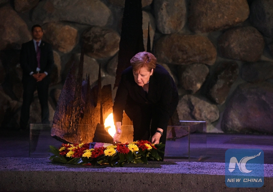 JERUSALEM, Oct. 4 (Xinhua) -- German Chancellor Angela Merkel visited Israel's Yad Vashem Holocaust Memorial Museum in Jerusalem on Thursday morning, kick-starting her two-day visit.