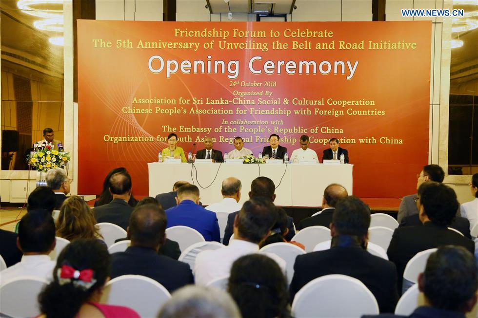 COLOMBO, Oct. 24 (Xinhua) -- A Friendship Forum to celebrate the fifth anniversary of the Belt and Road Initiative kicked off in here on Wednesday.