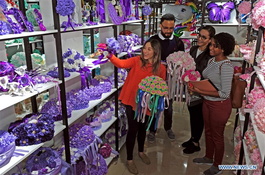 Merchant Catalina Salazad (L) from Colombia introduces wedding decorations to purchasers in Yiwu, east China's Zhejiang Province, Oct. 22, 2018. 40 years ago, Yiwu was a small agricultural county in the middle of Zhejiang Province. Nowadays, the county-level city has become "the world's largest wholesale market for daily commodities". In 2011, the State Council approved the "Yiwu International Trade Comprehensive Reform Pilot" and gave Yiwu market the autonomy of the first test. In 2017, Yiwu's small commodity market has ranked first in the national professional market for 26 consecutive years, with a market area of more than 6.4 million square meters, 75,000 business stores, and more than 1.8 million products sold to 210 countries and regions around the world. At the same time, Yiwu optimizes the e-commerce environment and builds a support system for the entire industry of e-commerce. In 2017, Yiwu's e-commerce transaction volume reached 222 billion yuan (32 billion U.S. dollars). In recent years, Yiwu City has actively responded to the Belt and Road initiative. Nine freight rail routes have been launched from Yiwu to Central Asia, London and Spain, influencing 34 countries and regions, covering about 2,000 kinds of commodities and hardware tools that are made in China. According to statistics, about 15,000 overseas merchants from more than 100 countries and regions are stationed in Yiwu. (Xinhua/Tan Jin)