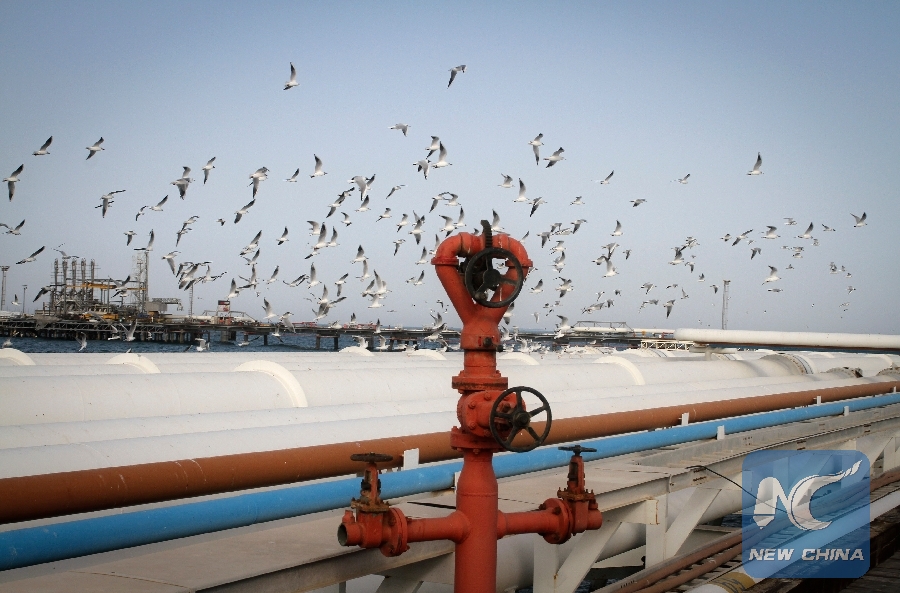 File Photo: Birds fly over oil pipelines on the Kharg Island in the Persian Gulf, southern Iran, on Feb. 23, 2016. (Xinhua/Ahmad Halabisaz)