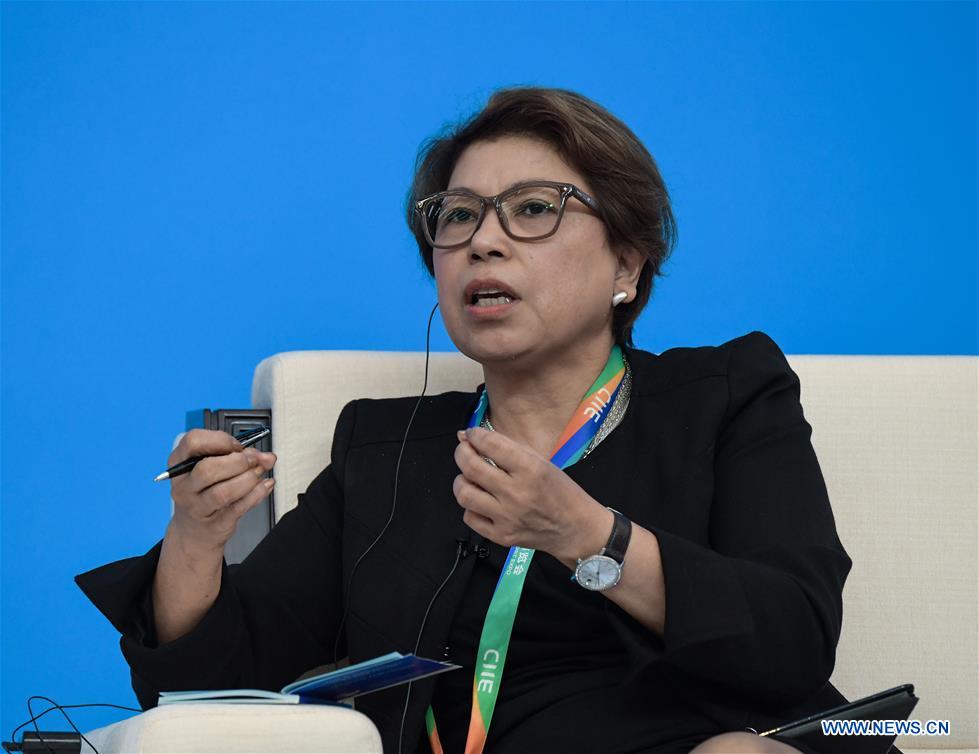 Rebecca Fatima Sta. Maria, senior policy fellow of Economic Research Institute for ASEAN and East Asia, speaks at the Parallel Session on Trade and Innovation of the Hongqiao International Economic and Trade Forum in Shanghai, east China, Nov. 5, 2018.