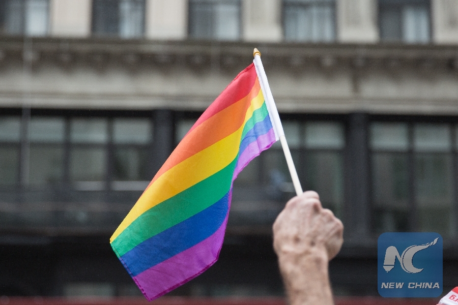 File Photo: A man waves a rainbow flag during the annual LGBT Pride Parade in Manhattan, New York, June 28, 2015. (Xinhua/Li Muzi)