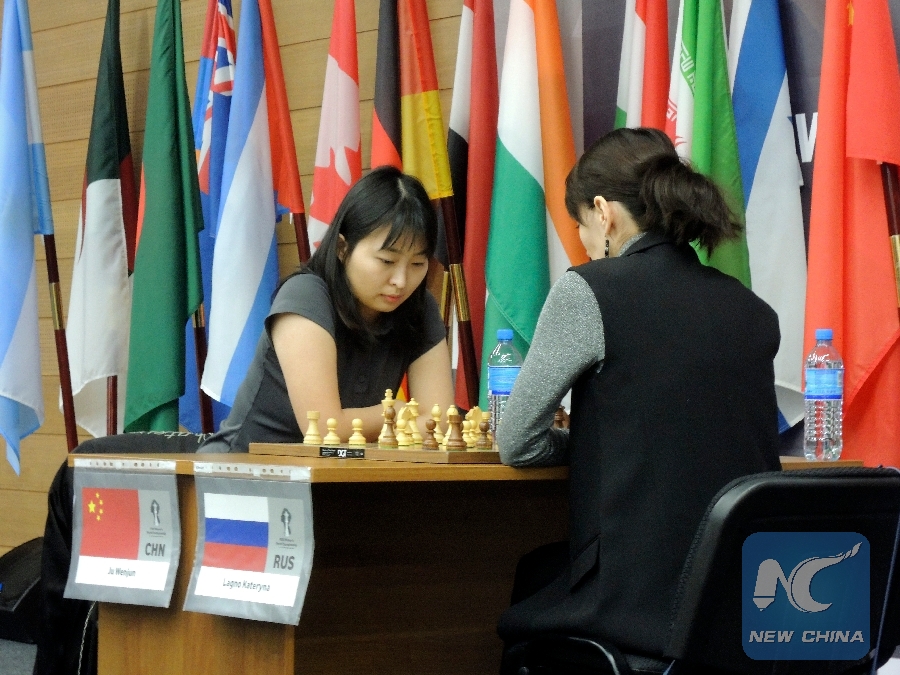 China's Ju Wenjun beat home favorite Kateryna Lagno in Khanty-Mansiysk, Russia on Nov. 23, 2018 to retain her crown in the women's world chess championship. (Xinhua)
