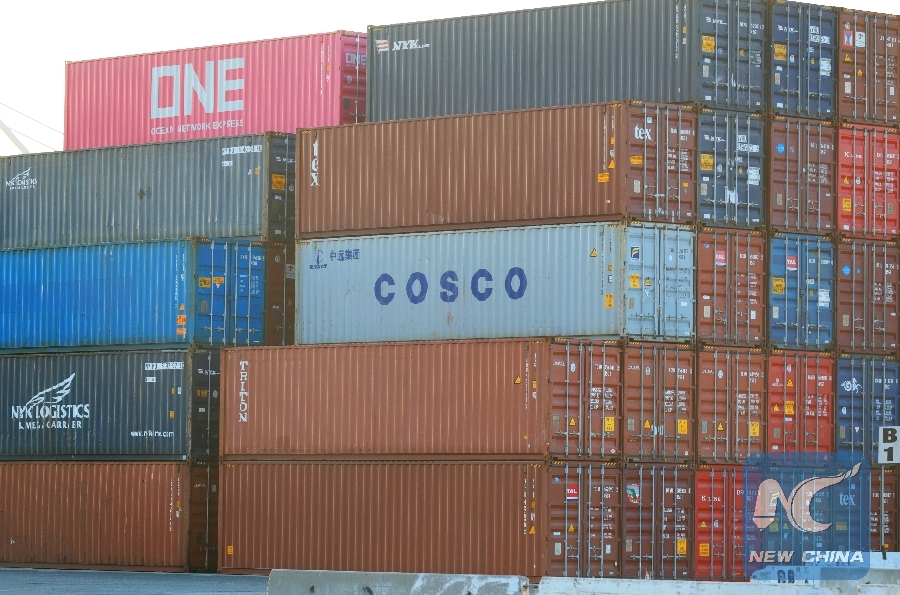 File Photo: A container of China COSCO Shipping Corporation Limited is seen at the Port of Long Beach, Los Angeles County, the United States, Aug. 23, 2018. (Xinhua/Li Ying)