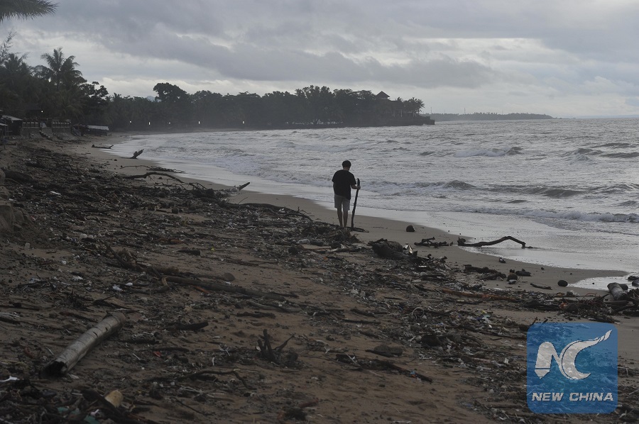 A man walks on Anyer beach in Serang, Banten Province, Indonesia, Dec.26, 2018. (Xinhua/Zulkarnain)