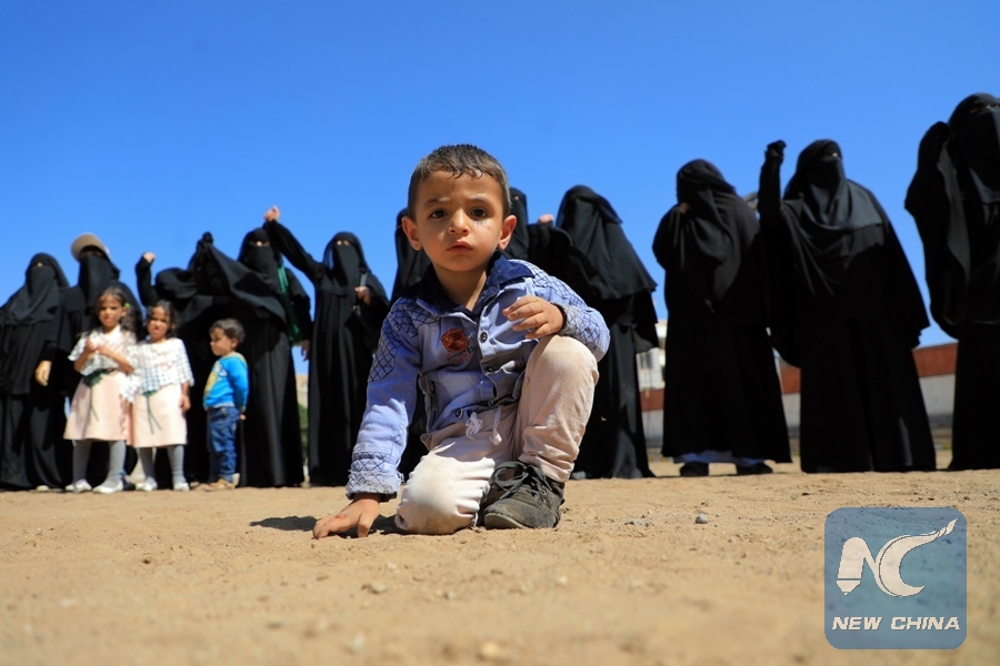 The file photo shows that Huthi female supporters demonstrate to support Huthi militias fighting Saudi-backed Yemeni government forces in the port city of Hodeidah, during a rally in the capital Sanaa, Yemen on Nov. 10, 2018. (AFP Photo)