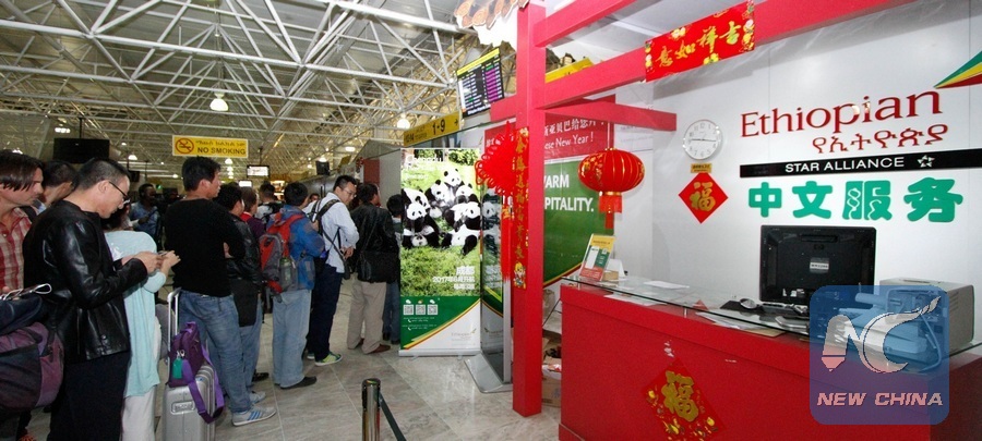 File photo shows Chinese passengers wait for joining the special event held at the Bole International Airport in Addis Ababa, capital of Ethiopia, Jan. 20, 2017. The Ethiopian Airlines held a special event for Chinese nationals returning home for the Chinese New Year, or Spring Festival. (Xinhua/Michael Tewelde)