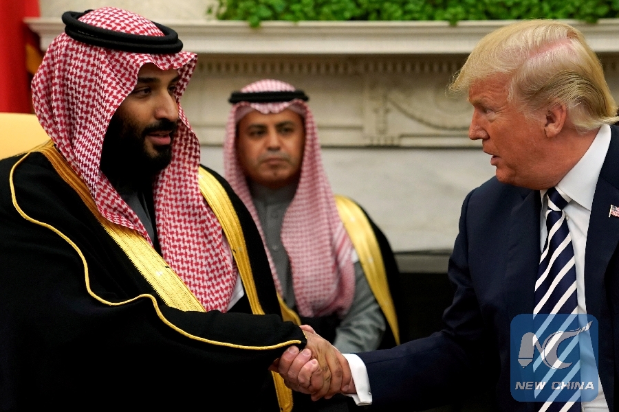 File Photo: U.S. President Donald Trump shakes hands with Saudi Arabia's Crown Prince Mohammed bin Salman in the Oval Office at the White House in Washington, U.S. March 20, 2018. (Xinhua/REUTERS)