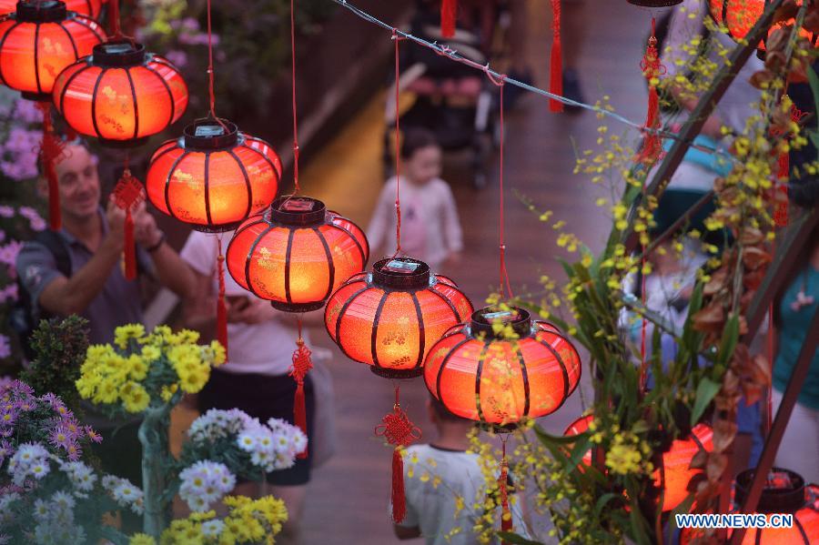 Lanterns are seen lighted at Singapore's Gardens by the Bay in Singapore, Feb. 1, 2019. China will hold the Conference on Dialogue of Asian Civilizations starting from May 15. Under the theme of "exchanges and mutual learning among Asian civilizations and a community with a shared future," the conference includes an opening ceremony and sub-forums. (Xinhua/Then Chih Wey)