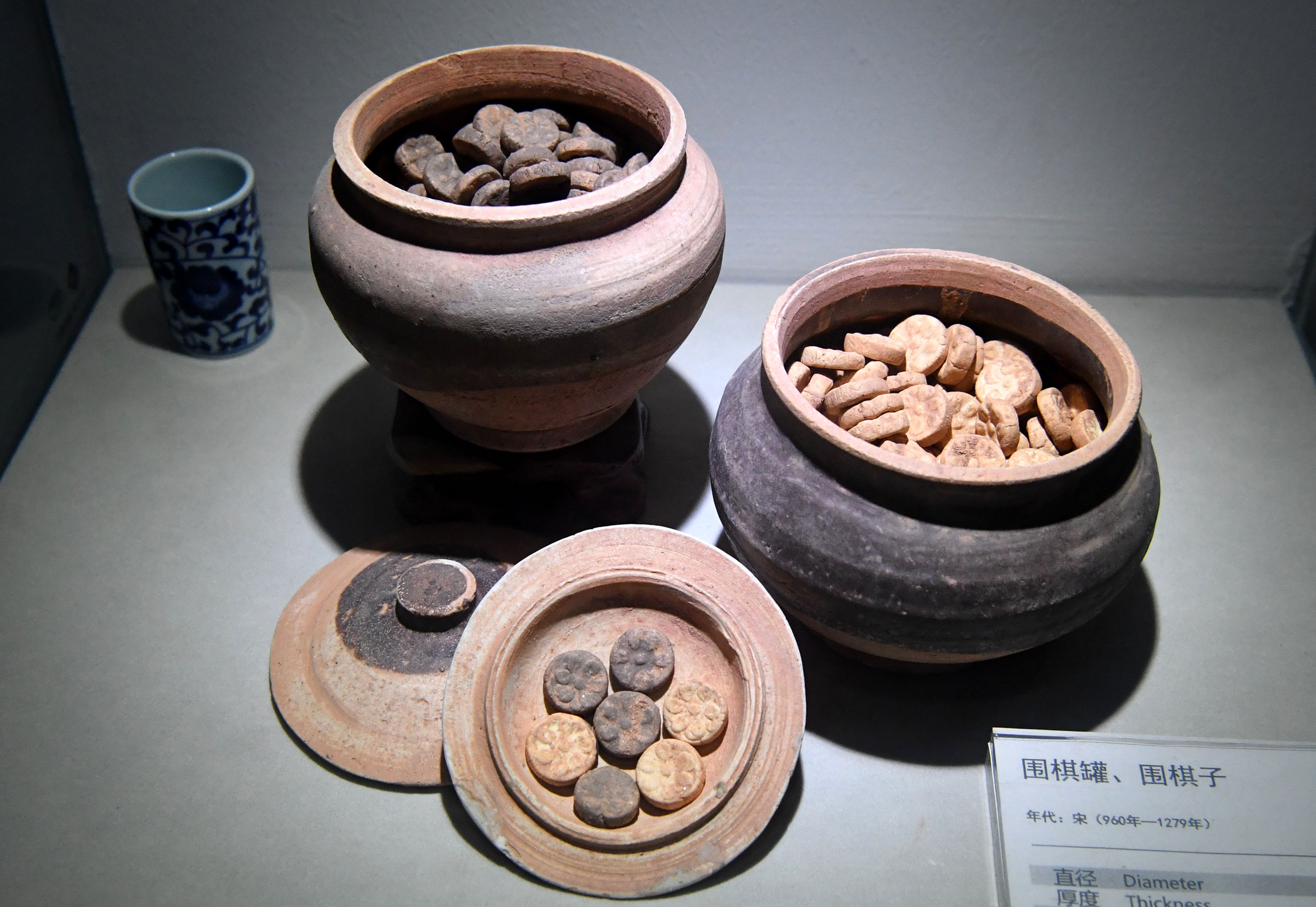 Go pieces and bowls are displayed at the Go Museum in Luoyang, central China's Henan Province, May 14, 2019. (Xinhua/Li An)