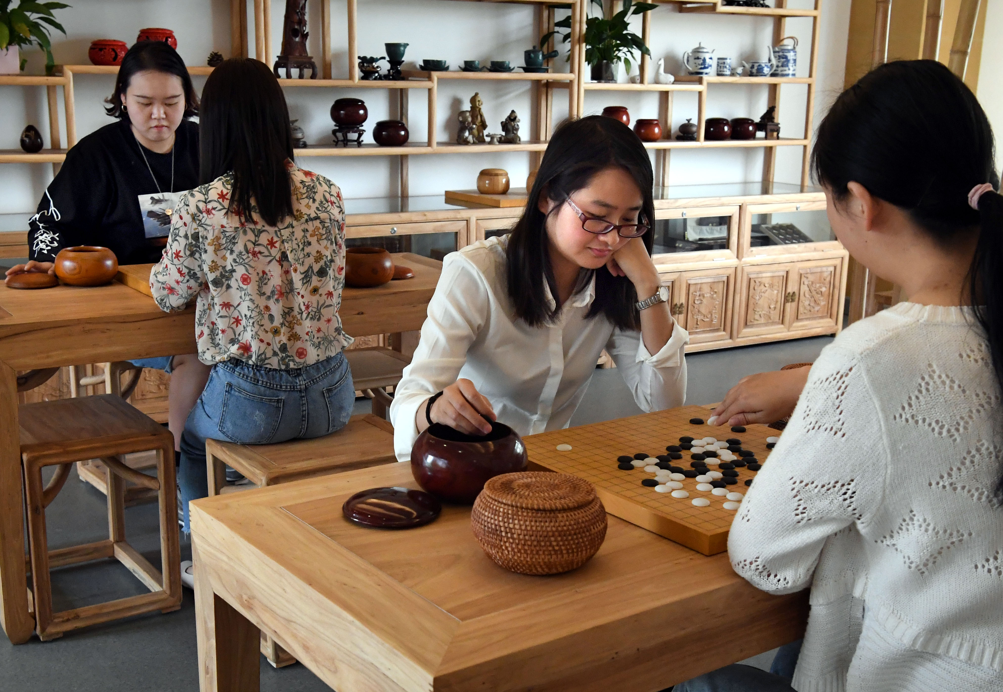People play Go game at the Go Museum in Luoyang, central China's Henan Province, May 14, 2019. (Xinhua/Li An)