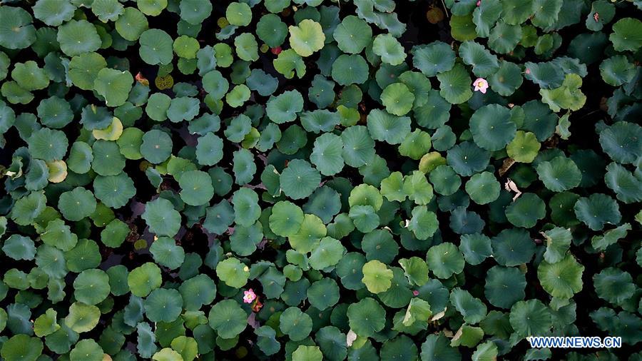 Aerial photo taken on July 17, 2019 shows lotus flowers in Nianjia Lake at a park in Changsha, central China's Hunan Province. (Xinhua/Chen Zeguo)