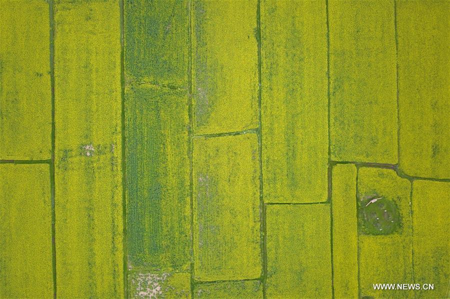 Aerial view of cole flowers in northwest China's Gansu