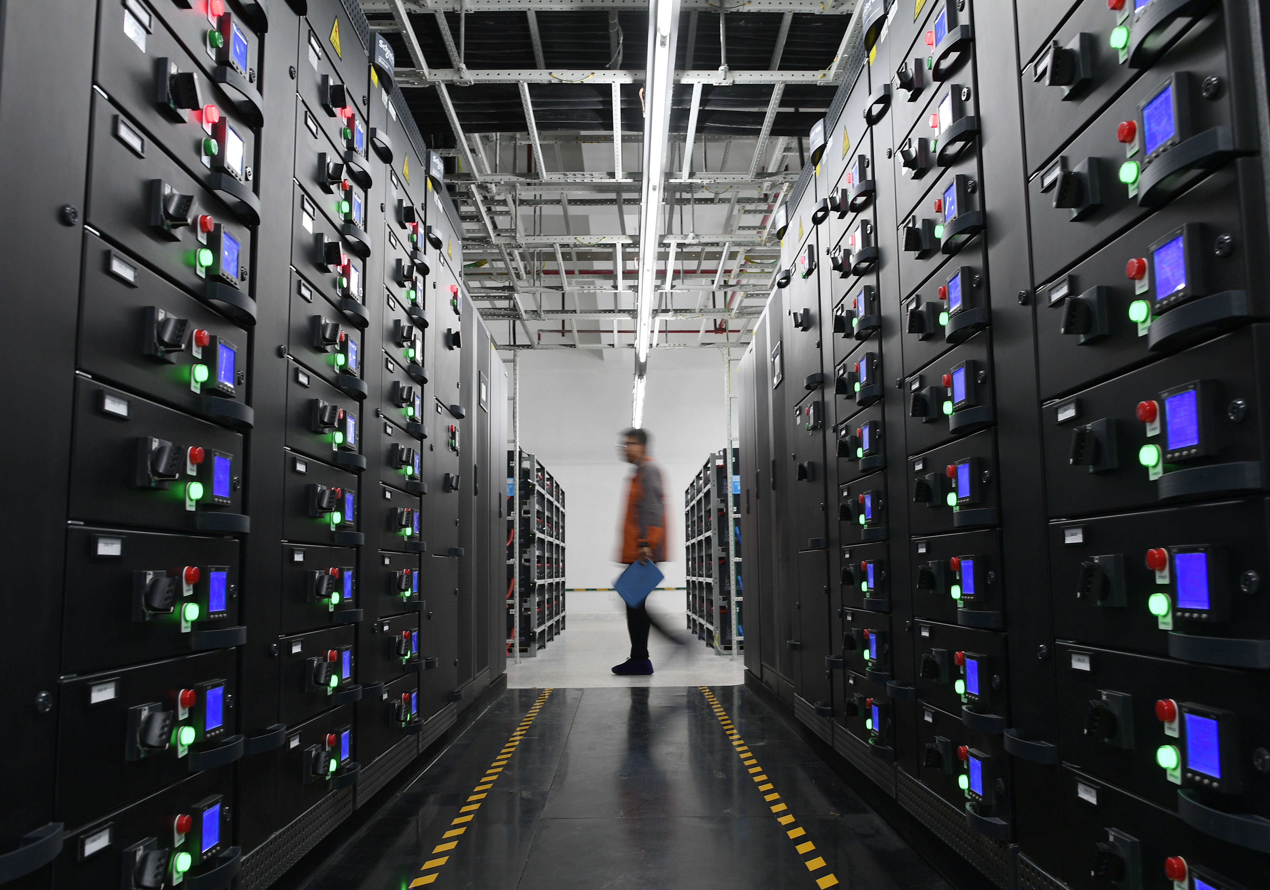 A worker maintains equipments at a cloud computing base under construction in Zhongwei City, northwest China's Ningxia Hui Autonomous Region, May 31, 2019. (Xinhua/Wang Peng)