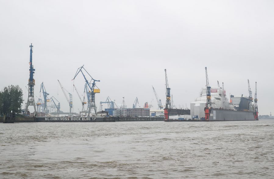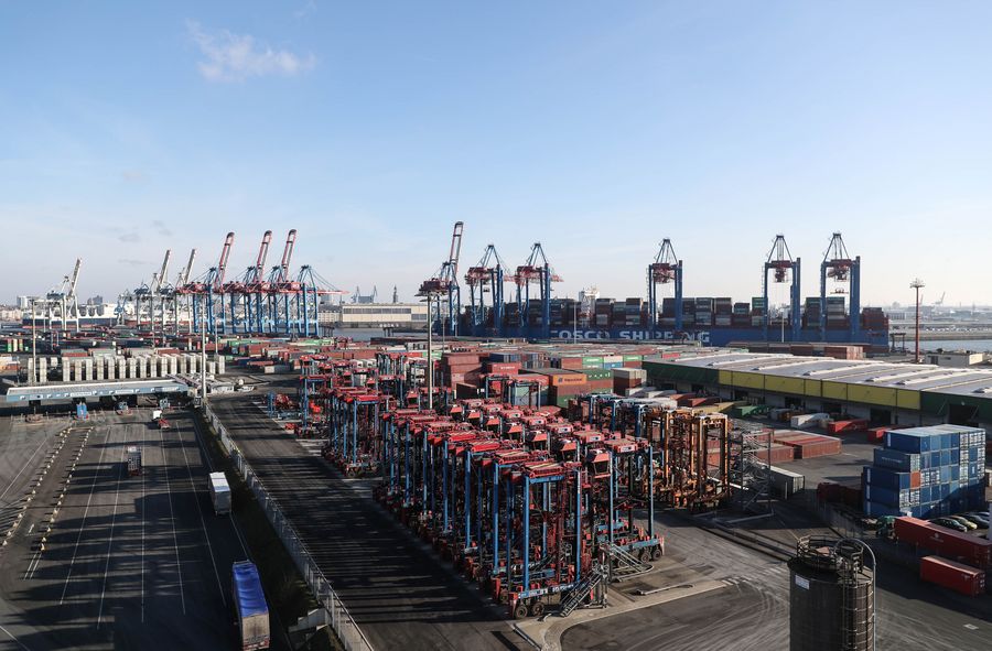 Photo taken on May 21, 2019 shows a view of the port area of Hamburg, Germany. (Xinhua/Shan Yuqi)