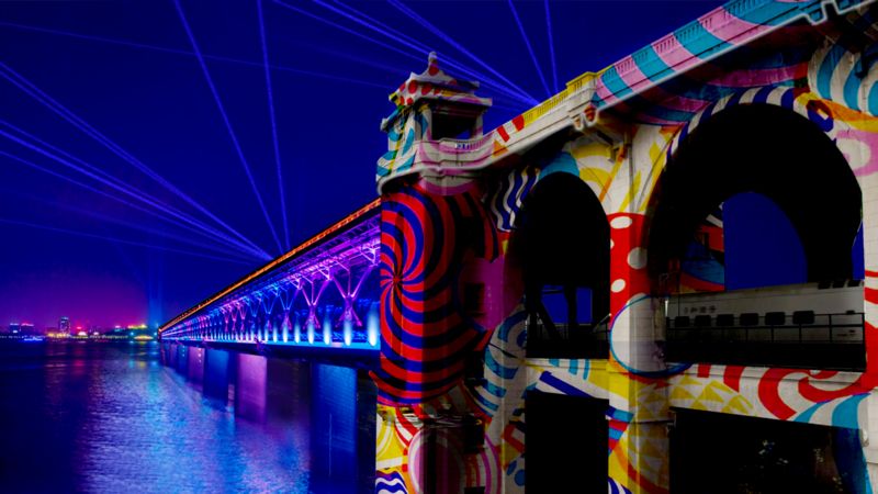 China's Wuhan city is installing a number of small LED lights on bridges and buildings along the Yangtze River and will use them to stage a light show to celebrate the Millitary World Games.